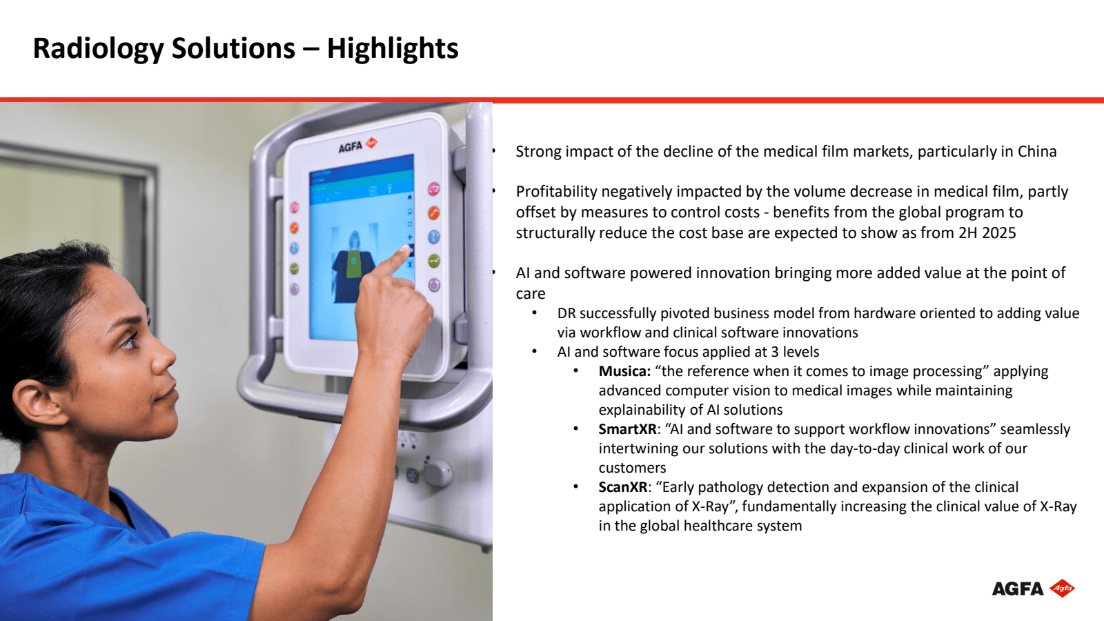 Q3 2025 revenue declined 7.1% year-over-year, mainly due to a sharp drop in medical film and the ongoing cloud transition in HealthCare IT, partially offset by growth in Digital Print & Chemicals.