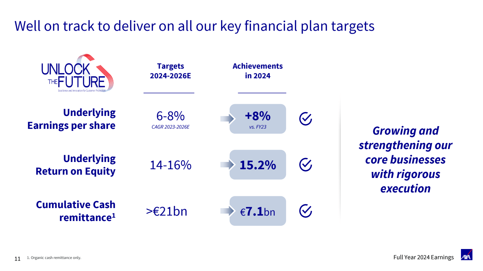 • Life & Health premiums grew 9% to €42.3 billion, with Life premiums up 11% and Health up 5%, driven by strong sales in Protection, Unit-Linked, and capital-light savings products.