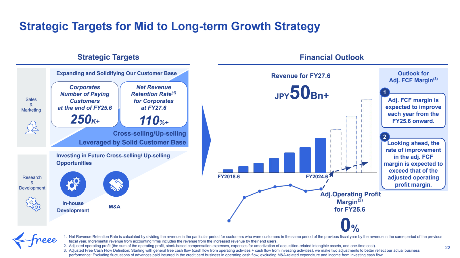 FY2026.6 revenue is projected to grow 23–25% YoY, with adjusted operating profit expected at ¥2,460–2,500 million (up 30.5–32.6% YoY) and margin expected to remain at or improve to 6%.