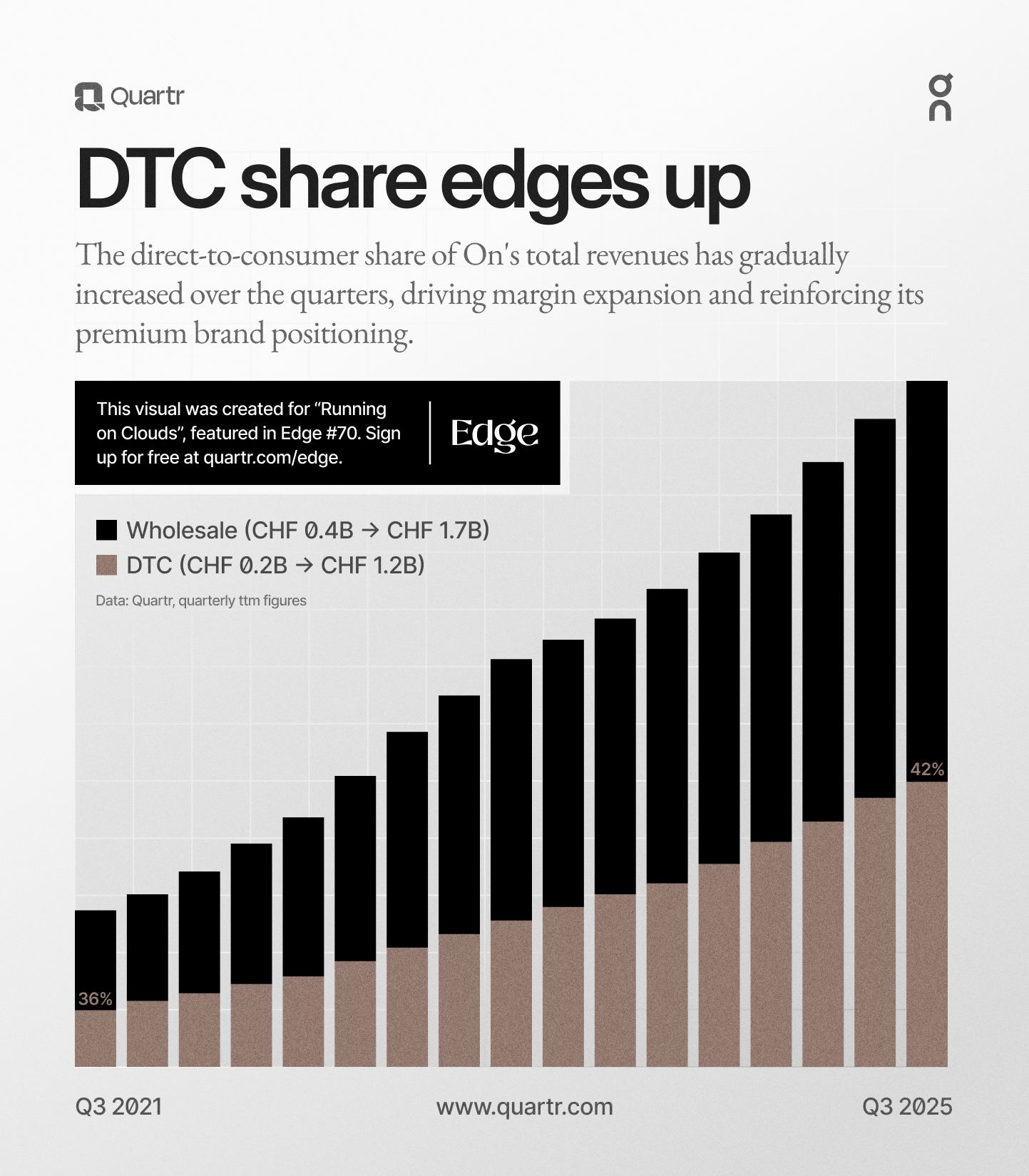 On's sales channel mix